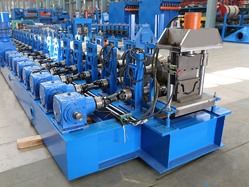 JCX-水槽钢成型设备采用自动化PLC控制,本设备主要由被动上料装置,u型槽成型主机,切断部分(有飞锯切断和模具切断)。模具切断的方式,客户选择的多一些,产品切完,切品整齐。