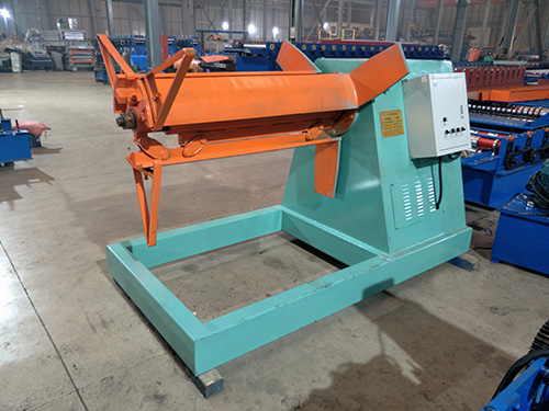 液压开卷机的卷筒料在左右箱体活动轴座上自由滚动,打开卷筒材料。钢板在输送架上向校平机推进,是配合校平机的前道工序。